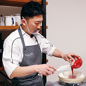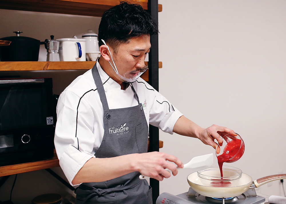 フルーツピューレに火をかけ過ぎると香りや色が飛んでしまうので、できるだけピューレ自体の美味しさを損なわないようにする製法も教えていただきました。